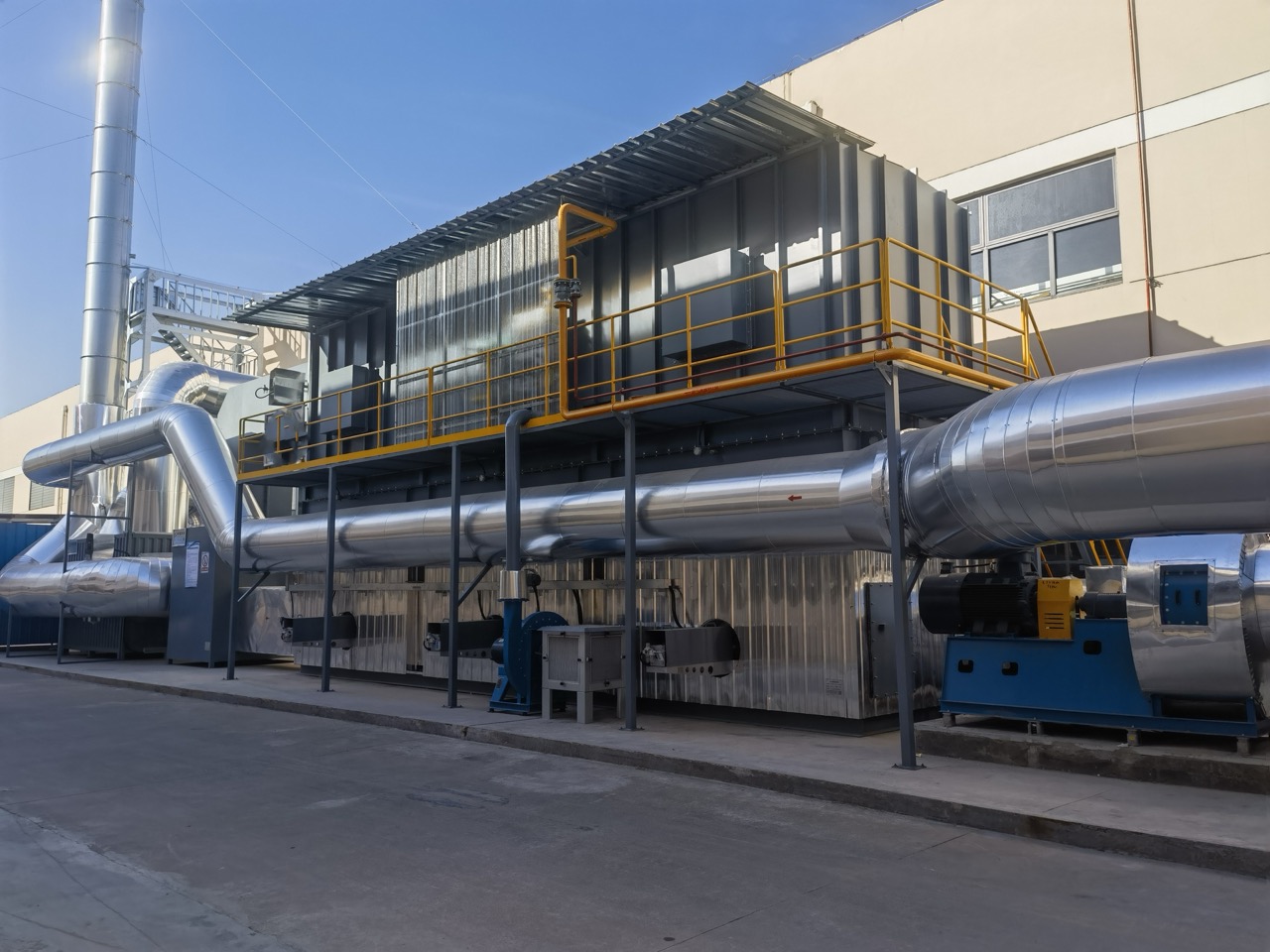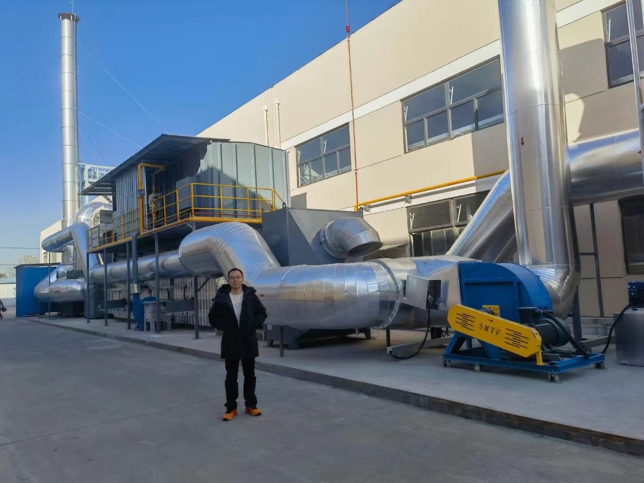 我司承接的某外资涂布行业的RTO+热能回收综合废气治理项目,投入生产顺利通过验收。该项目针对涂布过程产生的有机废气和车间的无组织排放废气经过RTO处理后,实现超低浓度排放。并对废气分解过程中产生的热能进行了换热回收再利用,维持涂布工序所需要的温度要求。此措施为客户每年节省的能源费用达150万元。公司开业之际,我方受邀参加开业庆典,对我司设备十分满意!!