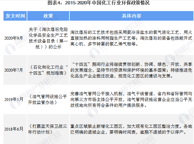 从行业环保政策来看,化工行业一直以来备受环保监管关注,政策法规颁布密集,对行业提出越来越高的生产排放要求。2020年7月,《石化和化工行业“十四五”规划指南》指出“十四五”期间行业将继续贯彻创新、协调、绿色、开放、共享的发展理念,坚持节约资源和保护环境的基本国策;持续推进危化品生产企业搬迁改造,规范化工园区的建设与发展。
