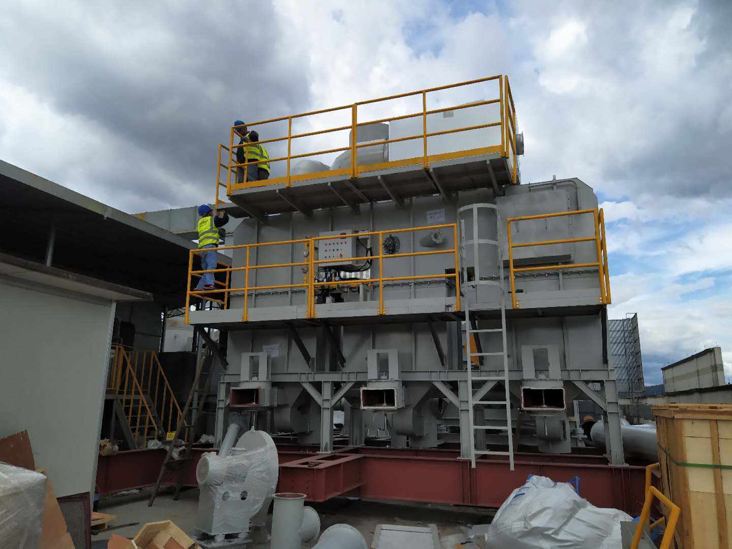 RTO废气蓄热燃烧系统,由废气前处理干燥,过滤器,切换风阀,燃烧炉,助燃系统,压缩空气系统,排气系统组成。